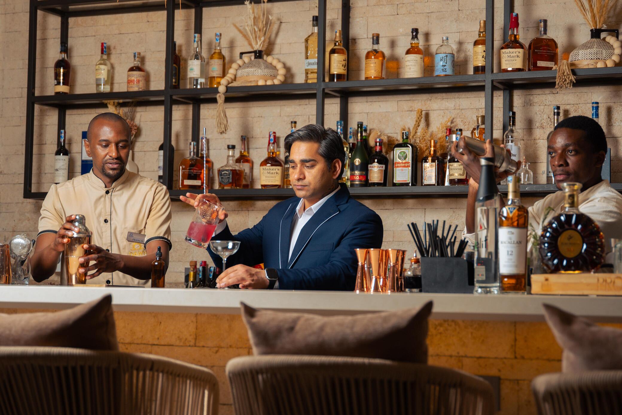 At Dawn Culinary Sunrise, the bar is more than a place to pour drinks—it’s a stage for creativity. Guided by Kasana, our head mixologist, this team brings artistry, flair, and innovation to every glass. From signature cocktails to fresh twists on classics, the bar team is always experimenting, crafting flavors and experiences that surprise and delight. Every shake, stir, and garnish is designed to match the energy of Dawn—vibrant, unforgettable, and a little bit daring. They are the dreamers, the creators, and the storytellers behind every sip.